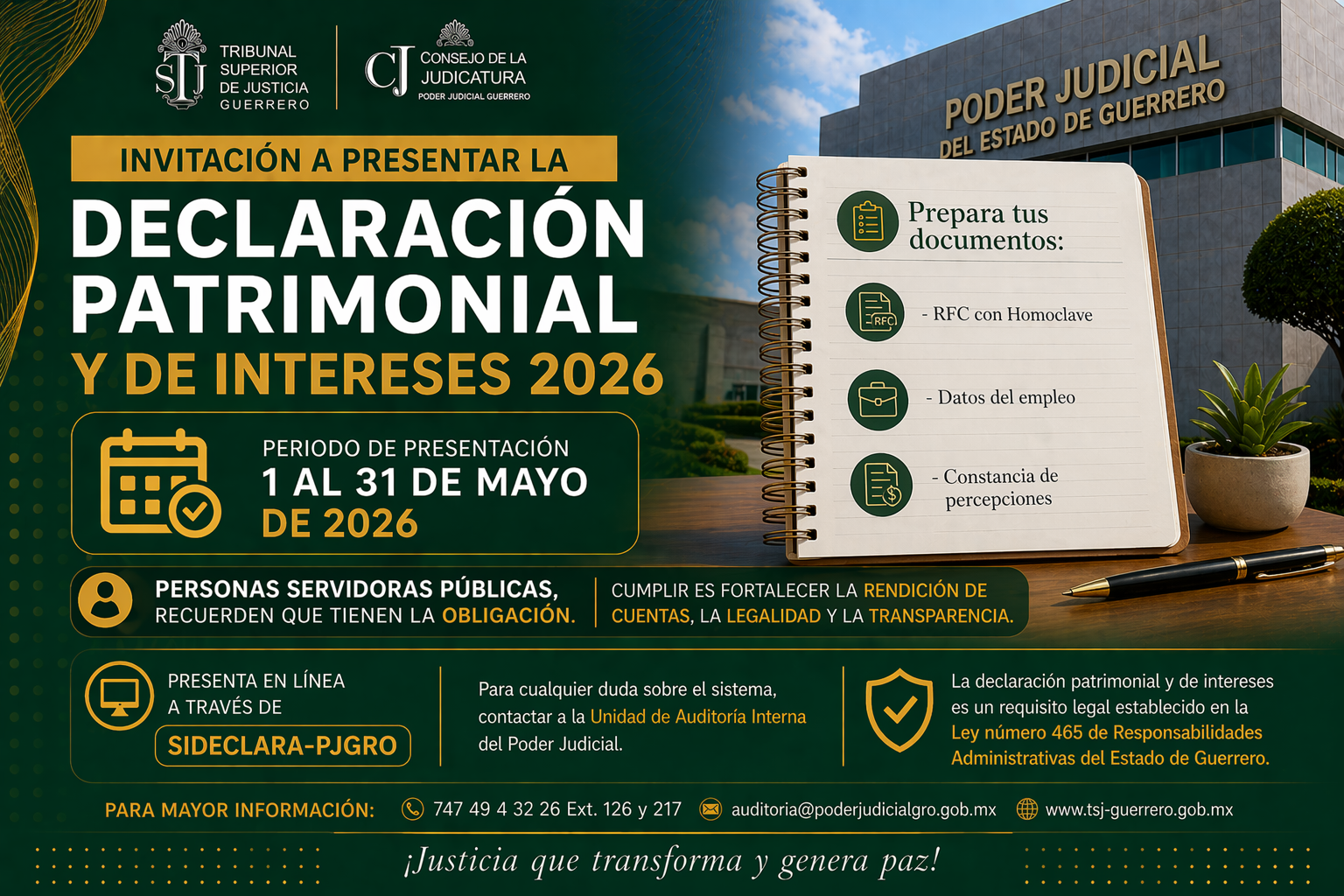 Convocatoria para la obtención de beca económica del Ciclo escolar 2025-2026 para hijos de trabajadores sindicalizados del Tribunal Superior de Justicia del Estado de Guerrero.